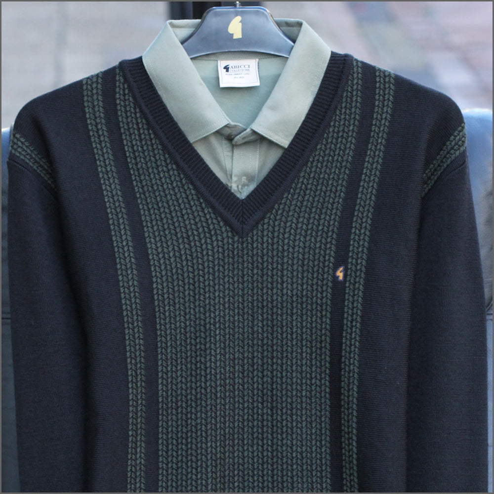 Stylish Black Patterned V Neck is a great addition to anyone's wardrobe and is one of the many choices of quality knitwear available in store and online. This Quality Neck V comes with a nice soft toning and can be worn with various T Shirts. We would be happy to suggest a few options for you from our wide selection of Gabicci Tee Shirts. This year we have a wider than ever selection of quality V Necks. Made from 50% Wool and 50% Acrylic giving a hard wearing, machine washable, durable garment.
