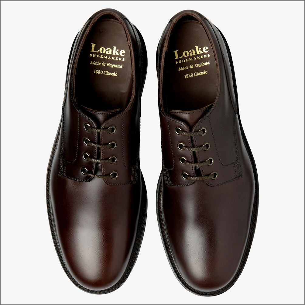 The Loake Ryde is a premium dark brown waxy leather plain-tie men’s shoe, combining strength, durability, and timeless style. Built on the Castle last, it offers a comfortable F fitting with a classic shape, making it a versatile choice for both formal occasions and smart-casual wear. Featuring Goodyear welted Castle rubber soles, Ryde delivers excellent grip, exceptional longevity, and the option of resoling, ensuring years of reliable performance. Designed and engineered in Kettering, Northamptonshire, and handmade in Loake’s high-grade factory in England,
