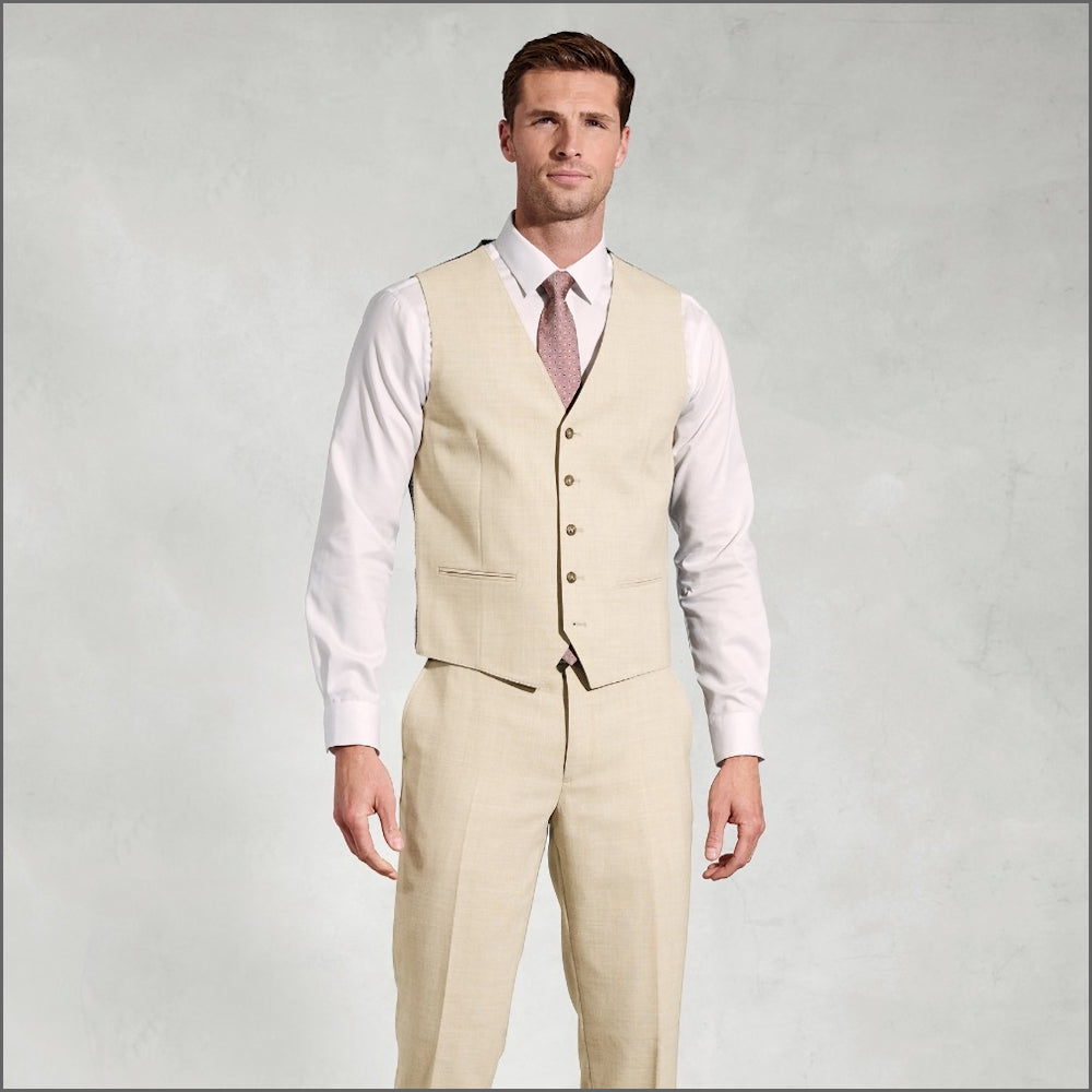 Waistcoat: Tailored fit. 295g. Single breasted. Five button fastening. Two jetted pockets. Satin back. Adjustable backstrap with buckle. Dry clean only.