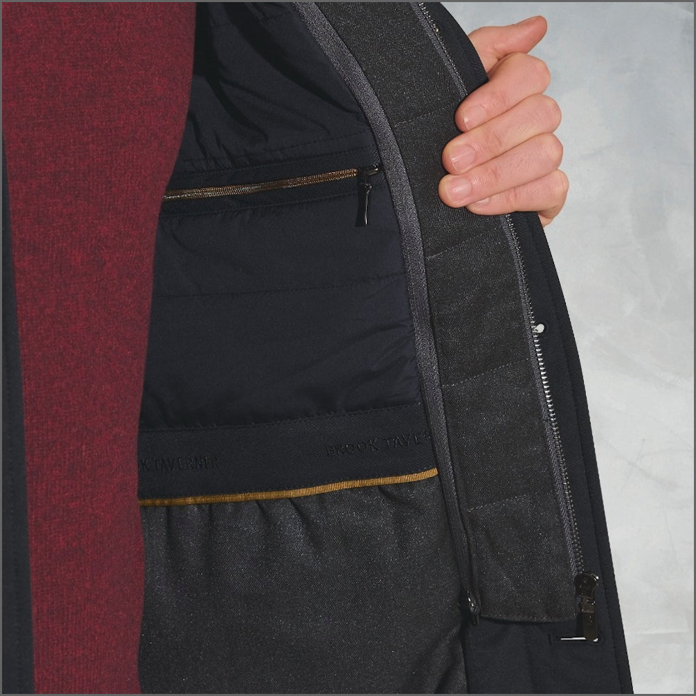 A shorty raincoat, the Bradshaw is wearable, adaptable and means business. Crafted with a subtle diagonal twill finish, the Bradshaw can breathe texture into your business casual ensemble in a handsomely understated way. The Bradshaw is water repellent and equipped with a mock zip out gilet for an added element of warmth and style, delivering equally on both functionality and stylistic appeal.