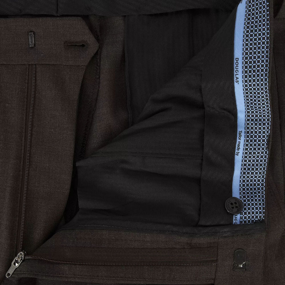 Mid Grey regular fit wool blend stretch formal trousers with flexi band slant side pockets with 6mm piping and edge stitch, double jetted hip pockets, knee lined, fly zip front with hook and bar extension, formal pressing
