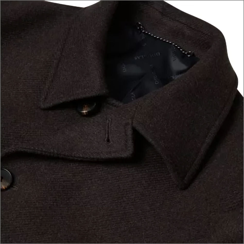 Douglas Edwards Charcoal Wool coat 5 Button front with side pockets and sleeve cuff. Quality quilted lining for added warmth. Sustainable wool made woven in Italy and manufactured in the UK. This quality is rare in todays market and well worth a purchase.