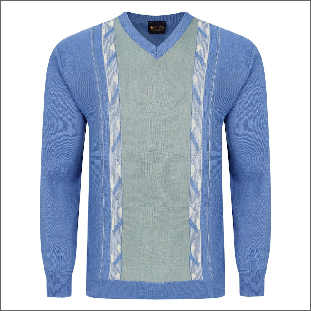Stylish sapphire Patterned V Neck is a great addition to anyone's wardrobe and is one of the many choices of quality knitwear available in store and online. This Quality Neck V comes with a nice soft toning and can be worn with various T Shirts. We would be happy to suggest a few options for you from our wide selection of Gabicci Tee Shirts. This year we have a wider than ever selection of quality V Necks. Made from 50% Wool and 50% Acrylic giving a hard wearing, machine washable, durable garment.