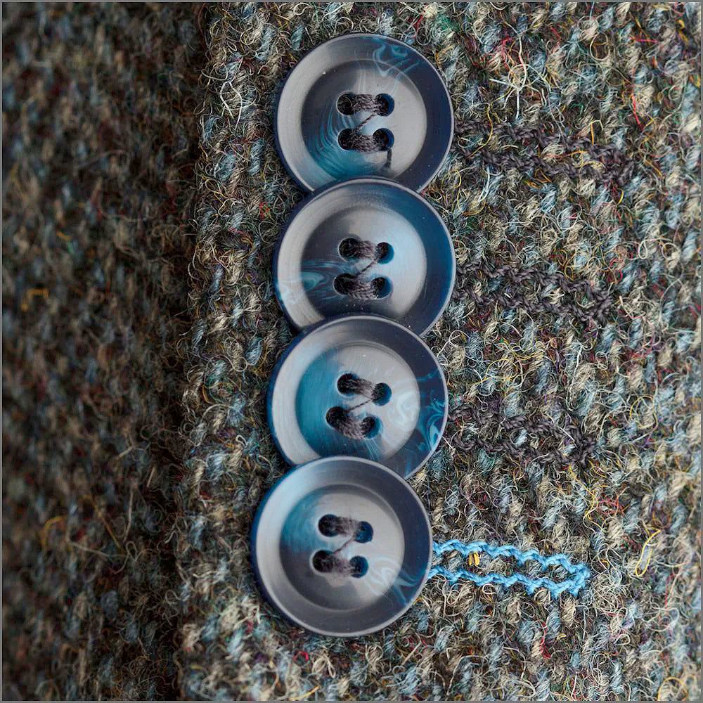 Inspired by the original Harris Tweed jacket that has come to define the ‘ Country Gentleman’, Harris Tweed has created a classic gentleman’s Harris Tweed jacket. This stylish Heather Blue Herringbone with various flecks of Blue and Olive throughout with contrasting Brown leather buttons. (Also available with Bone buttons)