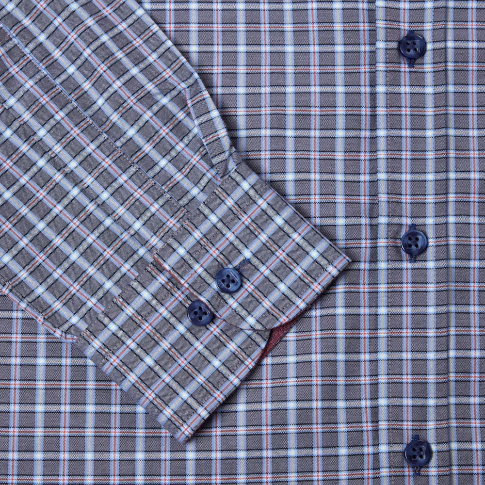 Ivano Blue check with a fine wine over check, a cotton Rich quality long Sleeve Shirt. Breast pocket, double button cuffs and contrasting threads.